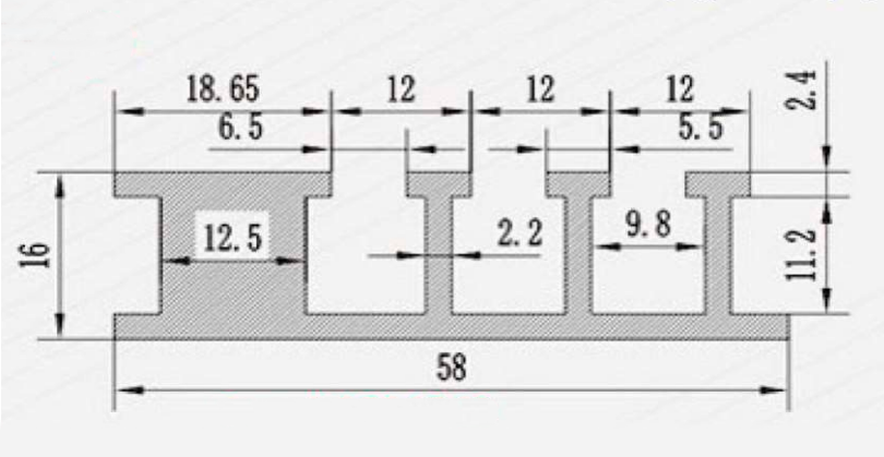 - Размеры: Ширина 58 мм, длина 1000 мм (вариант 500 мм), высота 16 мм, несколько широких Т-пазов для универсального крепления.